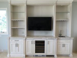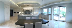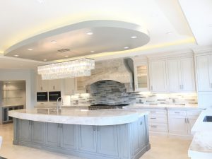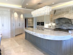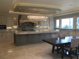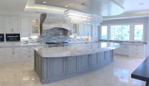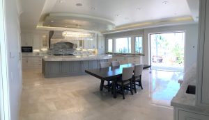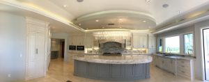 This RSF kitchen remodel is a prime example of luxury and space efficiency combined into one. Expanding the kitchen to a generous 750 square feet, we incorporated a cozy breakfast nook and a fully-equipped bar space, enhancing the heart of the home with an additional 200 square feet. The expansion seamlessly extends the kitchen by five feet into the backyard and raises the roof by two feet, inviting the outdoors in. Inspired by a dreamy La Jolla kitchen that I did that was featured in a renowned home magazine, our client sought to replicate that elegant design. The result is a bespoke culinary space that boasts a custom range hood crafted from the same exquisite Taj Mahal quartz used for the countertops. The island’s unique shape is artistically echoed in the drop ceiling above, creating a cohesive and sophisticated aesthetic. This kitchen’s transformation includes the installation of new windows and doors, top-of-the-line appliances, and custom cabinetry, offering a blend of beauty and functionality. Not to be overlooked is the additional bar area, positioned conveniently on the side opposite the island, perfect for entertaining. The project, which began in October 2015, reached completion in August 2016, culminating in a space where every detail reflects our client’s vision and our commitment to exceptional design.