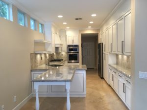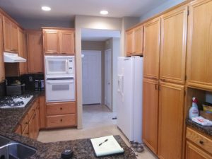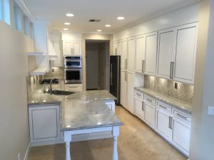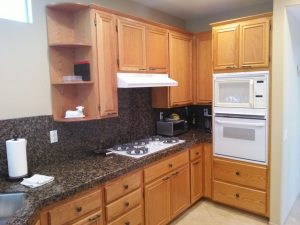Embark on a culinary journey with the complete kitchen remodel of this kitchen in Carmel Valley. The renovation features custom cabinetry that extends to a tailored hood, complemented by state-of-the-art appliances, elegant countertops, and sleek hardware. The central island has been reimagined not just as a prep space but also as a gathering spot, extended to accommodate comfortable seating. This extensive makeover began with demolition in October 2015 and was beautifully realized by December 2015, showcasing our commitment to timely and impactful design transformations.